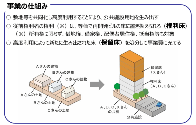 Additionally, newly created floor space (reserved floor) resulting from intensive land use is sold to new residents or developers to secure the funds necessary for the project.