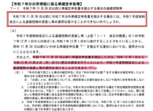 - 11月30日以前に申告した令和7年分準確定申告は、控除額が旧制度のまま → 更正の請求を行う効果を検討しましょう